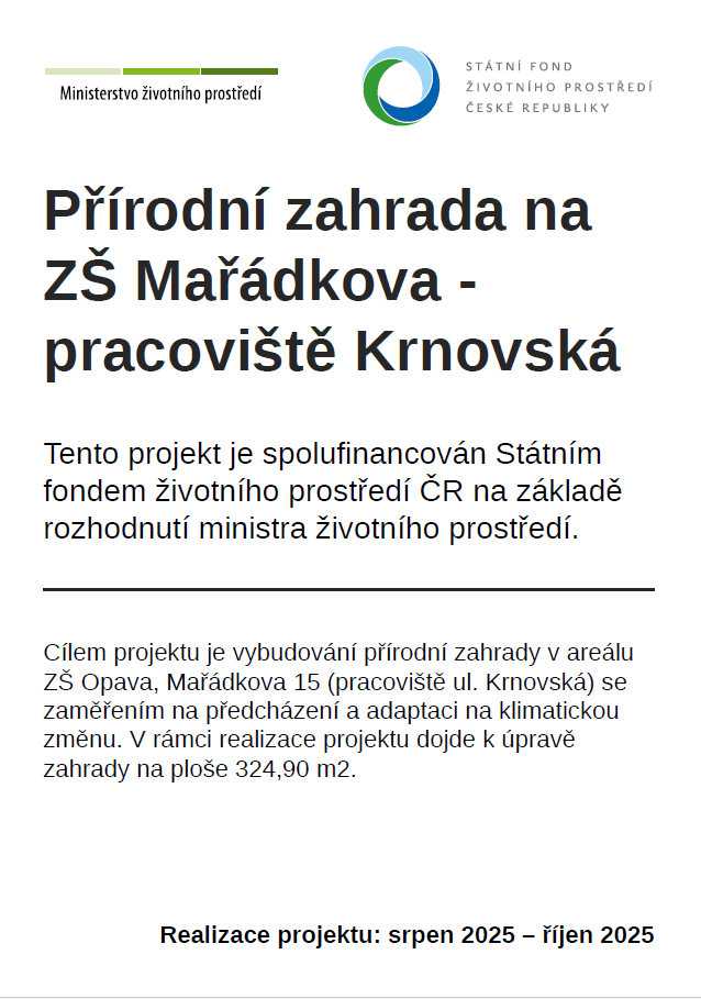 - Přírodní zahrada na ZŠ Mařádkova – pracoviště Krnovská