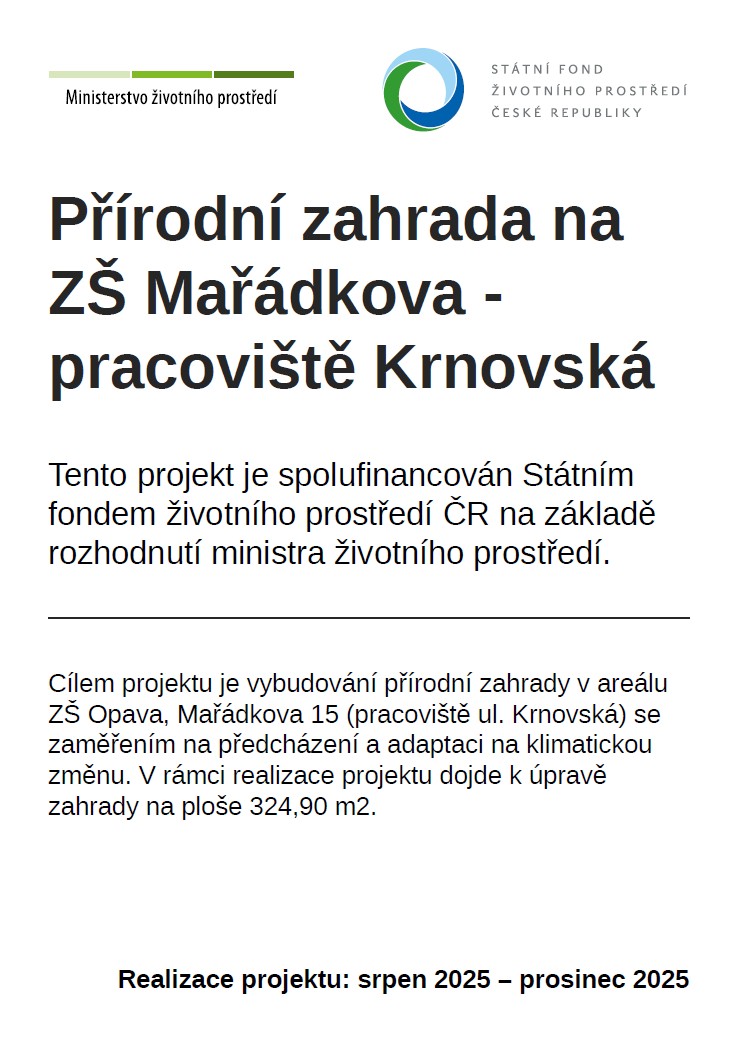 • Přírodní zahrada na ZŠ Mařádkova – pracoviště Krnovská