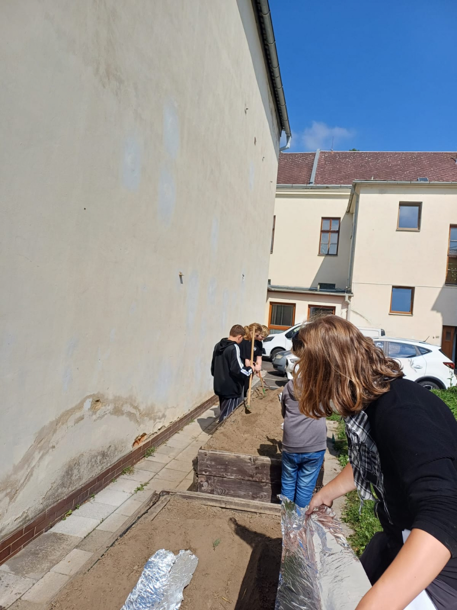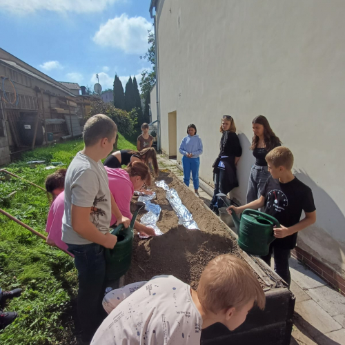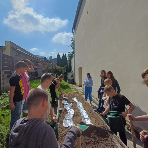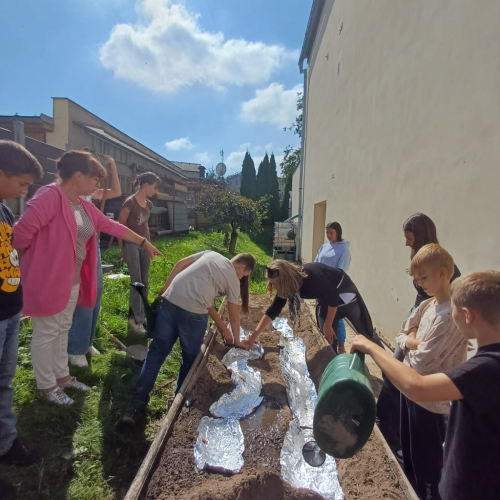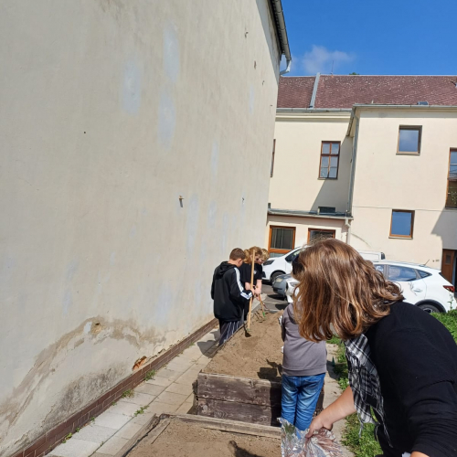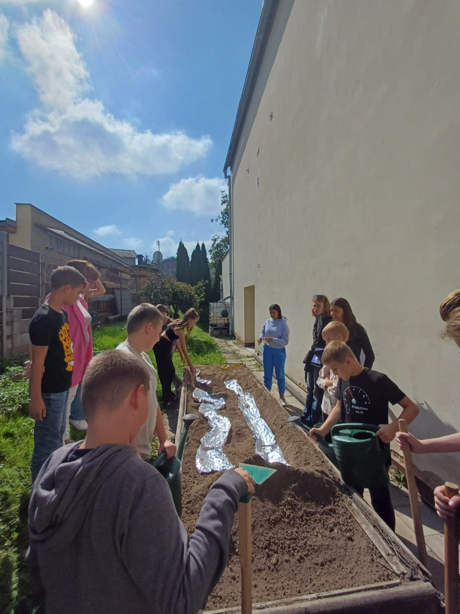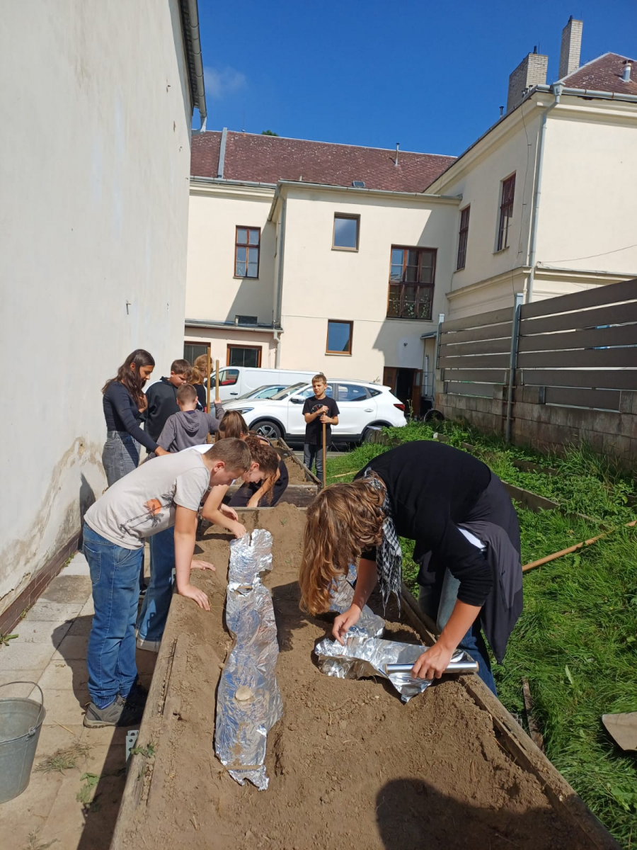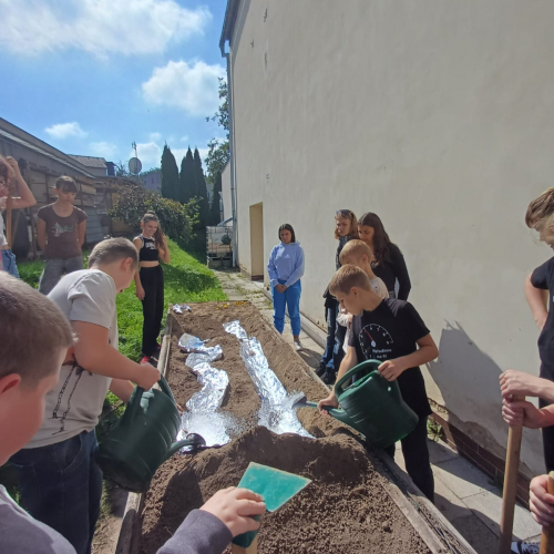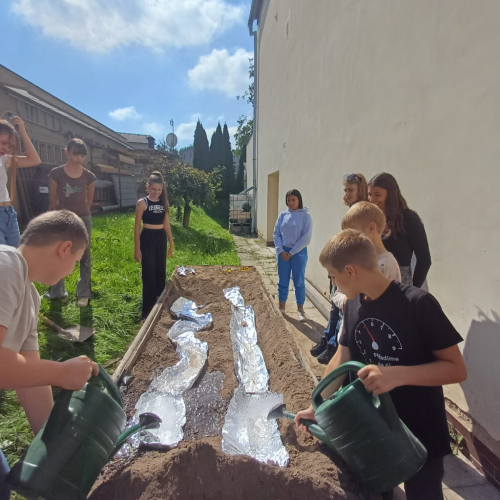 Žáci využili vyvýšené záhony na školní zahradě k vytvoření modelu dvou rozdílných vodních toků.