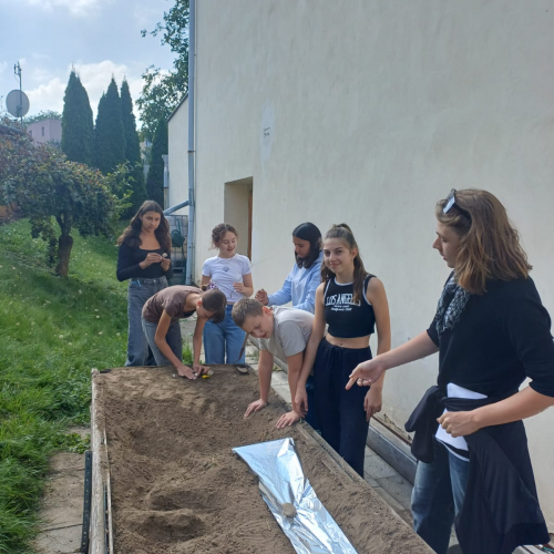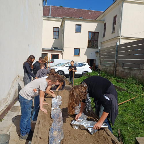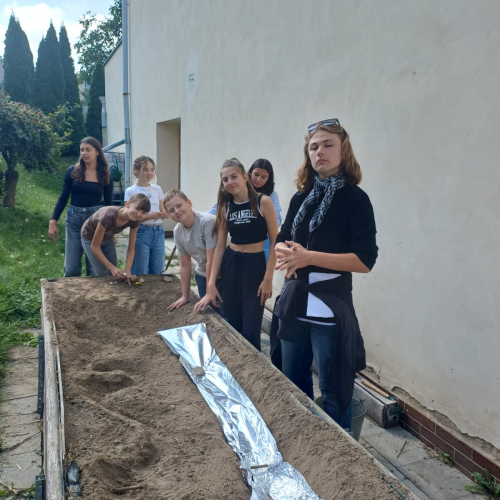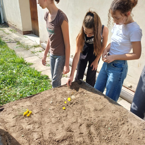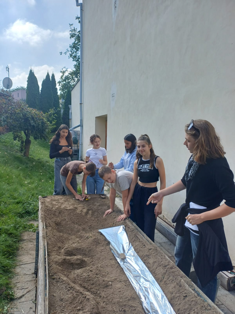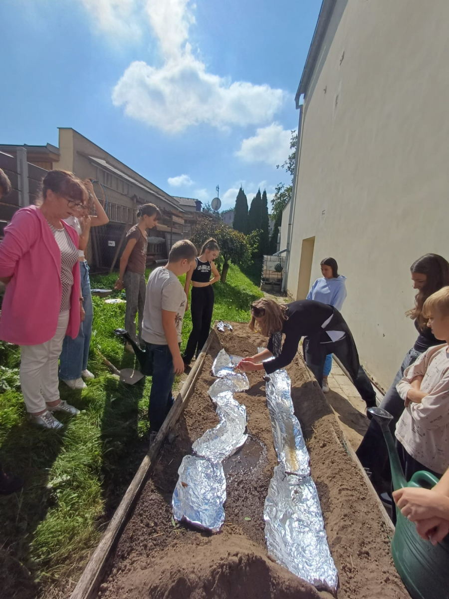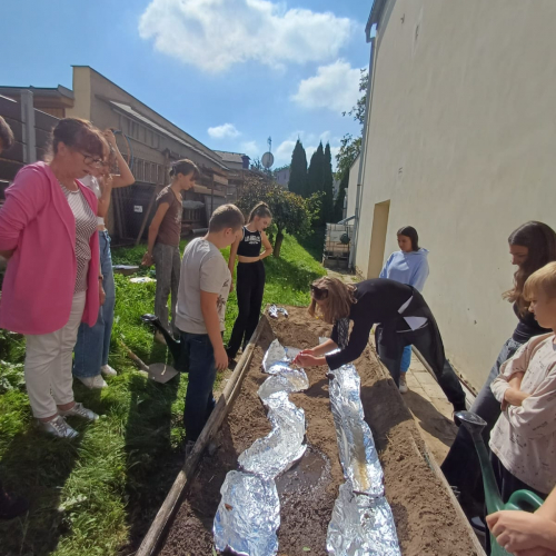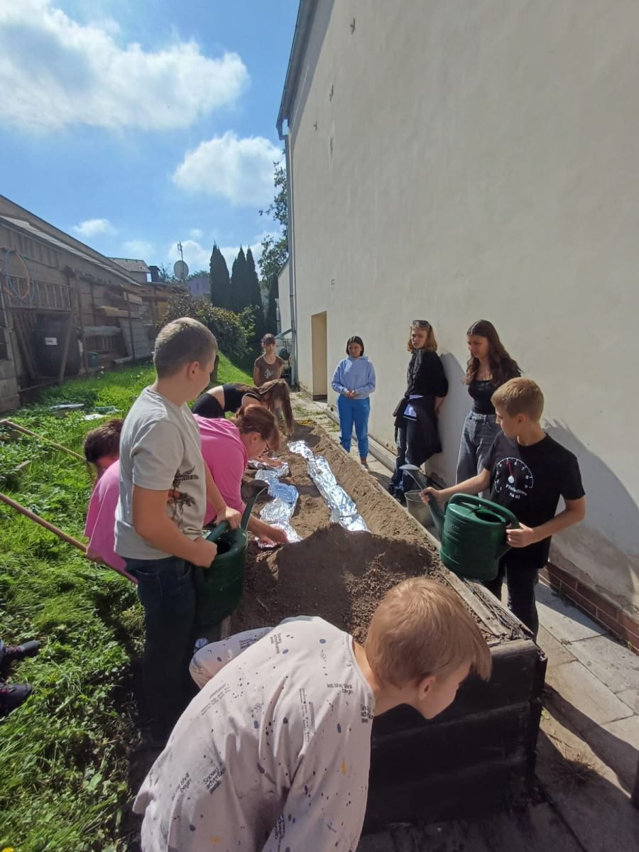 Žáci využili vyvýšené záhony na školní zahradě k vytvoření modelu dvou rozdílných vodních toků.
