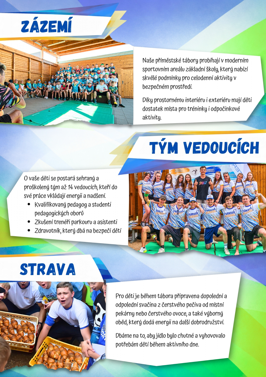 Sportovní spolek Parkour SCHOOL pořádá během letošních letních prázdnin pohybový příměstský tábor v prostorách několika školních sportovních areálů v okrese Opava, Ostrava a na Hlučínsku.