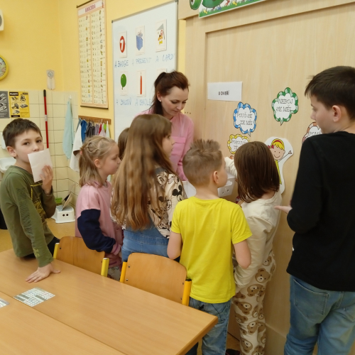 Odpoledne 13. března se dveře naší školy otevřely žákům 1. stupně, kteří se zúčastnili matematických dílen. Společně s rodiči vpluli do tajů matematických prostředí jako jsou autobus, výstaviště, krokování, geoboardy, indické násobení, zvířátka, dřívka, parkety, hráškové a krychlové stavby. Hravou formou nalézali řešení úloh, které podporují nejen logické myšlení, ale i prostorovou orientaci a matematické představy. Nechybělo ani interaktivní počítání. Na vlastní kůži tak rodiče s dětmi odhalili, že matematika může být i zábavná. Ve třídách panovala příjemná atmosféra, dobrá nálada, radost z objevování a poznávání.