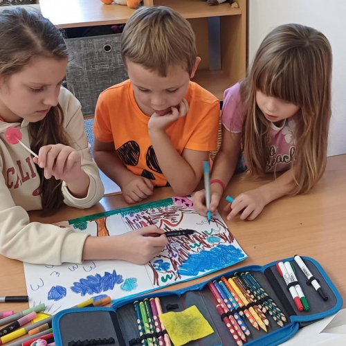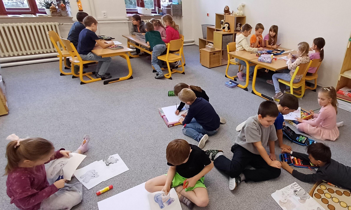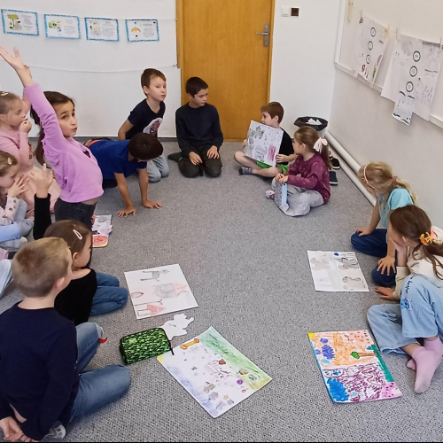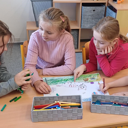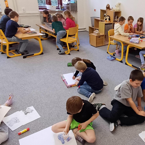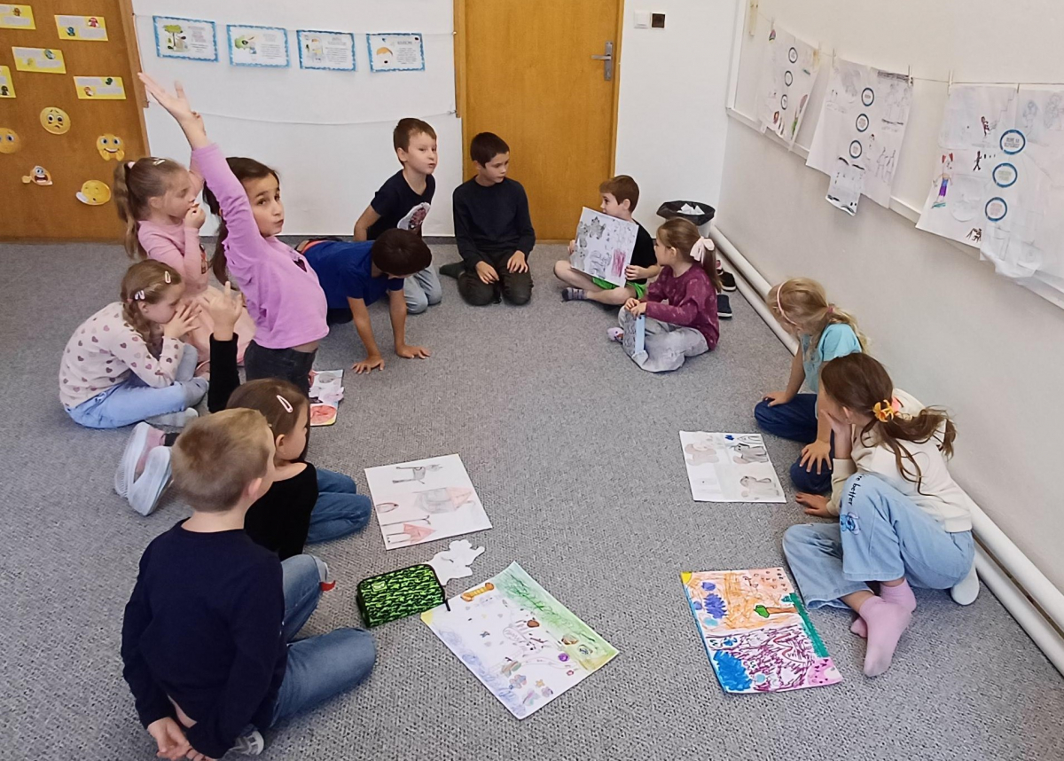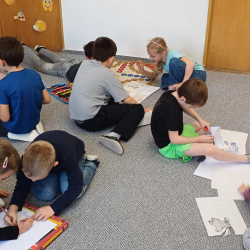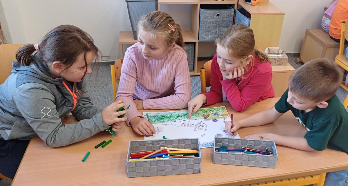 Žáci ve ŠD se v rámci ,,týmové práce" učí, jak spolu komunikovat, vzájemně se respektovat, podporovat a oceňovat. Fotografie ze společných prací při utváření pravidel v oddělení.